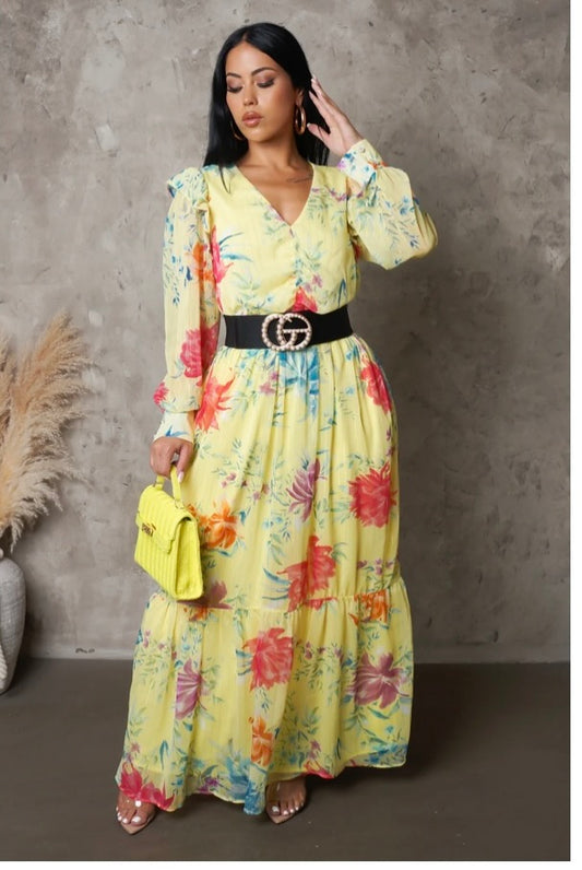 Plus Embroired Square Neck and Cuff Belted Dress Olive